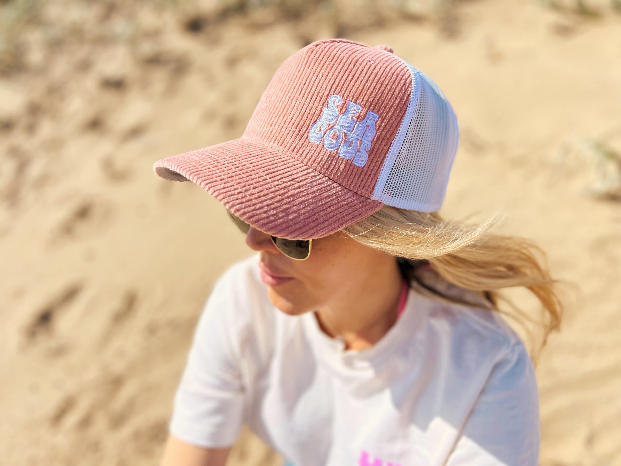 Corduroy Trucker Cap in coral